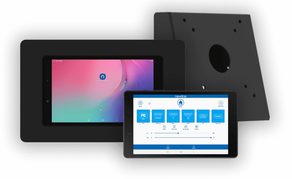 Control your Newline display from anywhere in the room. Basic controls like source switching, volume, brightness control, and more can be accessed from alternative locations. Protect your display controller tablet with the provided enclosure. Enjoy easy VESA pattern mounting and protection from theft or damage.